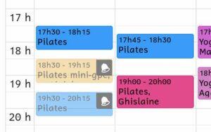 Si un cours est complet, vous pouvez vous inscrire sur une liste d’attente. Une icône de cloche est visible sur ces cours.